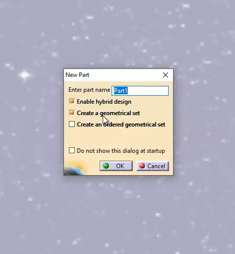 Second, check the ‘Enable hybrid design‘ and the ‘Create a Geometrical set‘ Options. Then Click OK.