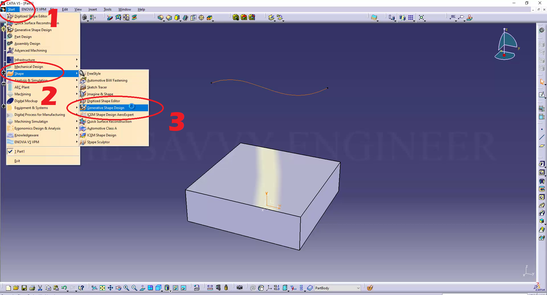 Now, go to Start, Shape then Generative Shape Design workbench.