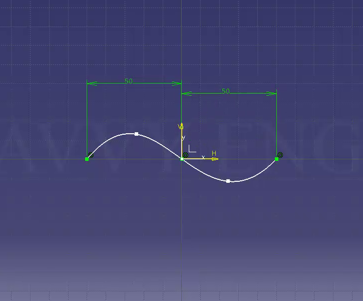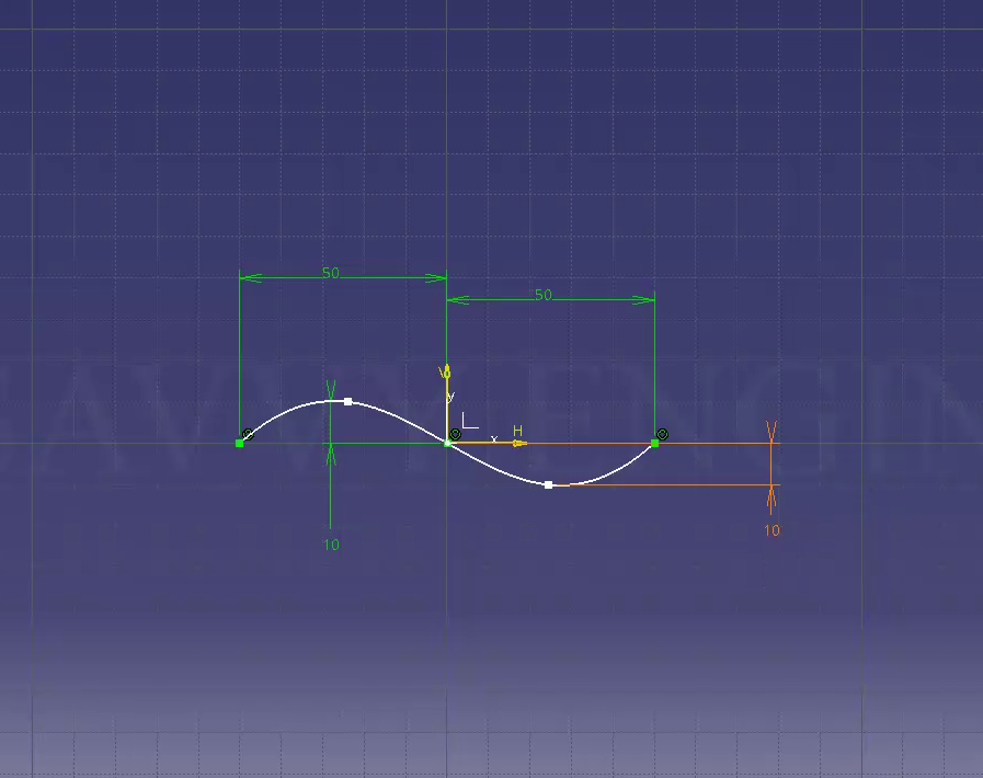 Click on the constraint command to add a 50mm dimension between the Y–axis and the extremity of the spline.