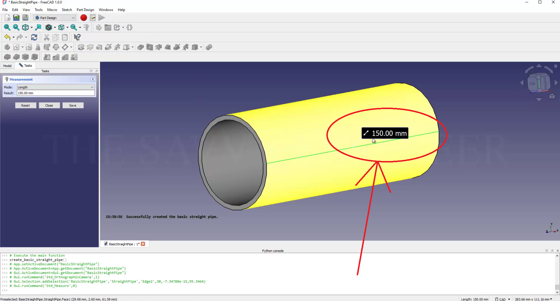let’s say that you want to change the length of this pipe, all that you need to do here, is to open the python script just downloaded, go to the Pipe Parameters, then change the pipe value to 200mm.