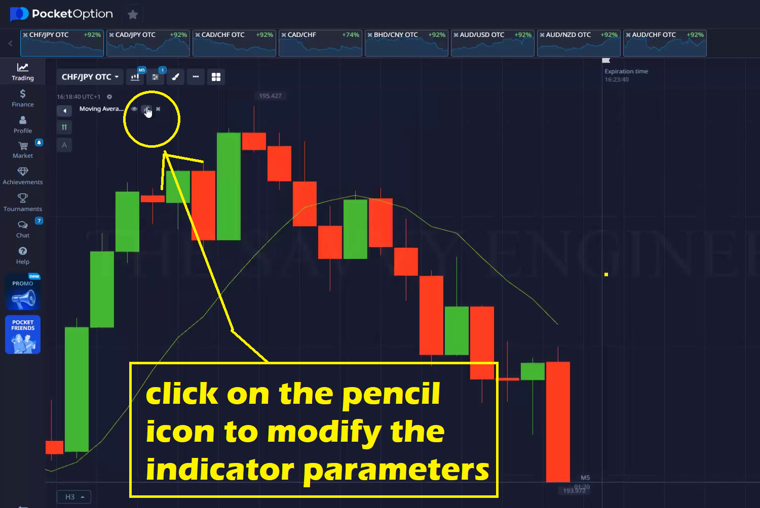 Click on the Pencil icon to modify the moving average parameters.