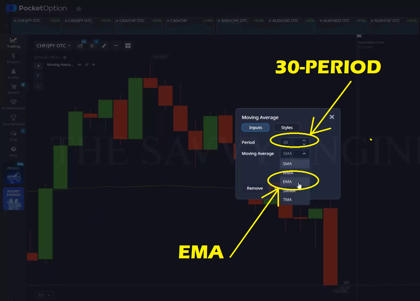 Change the Period value to 30, then modify the Moving Average type from SMA to EMA.