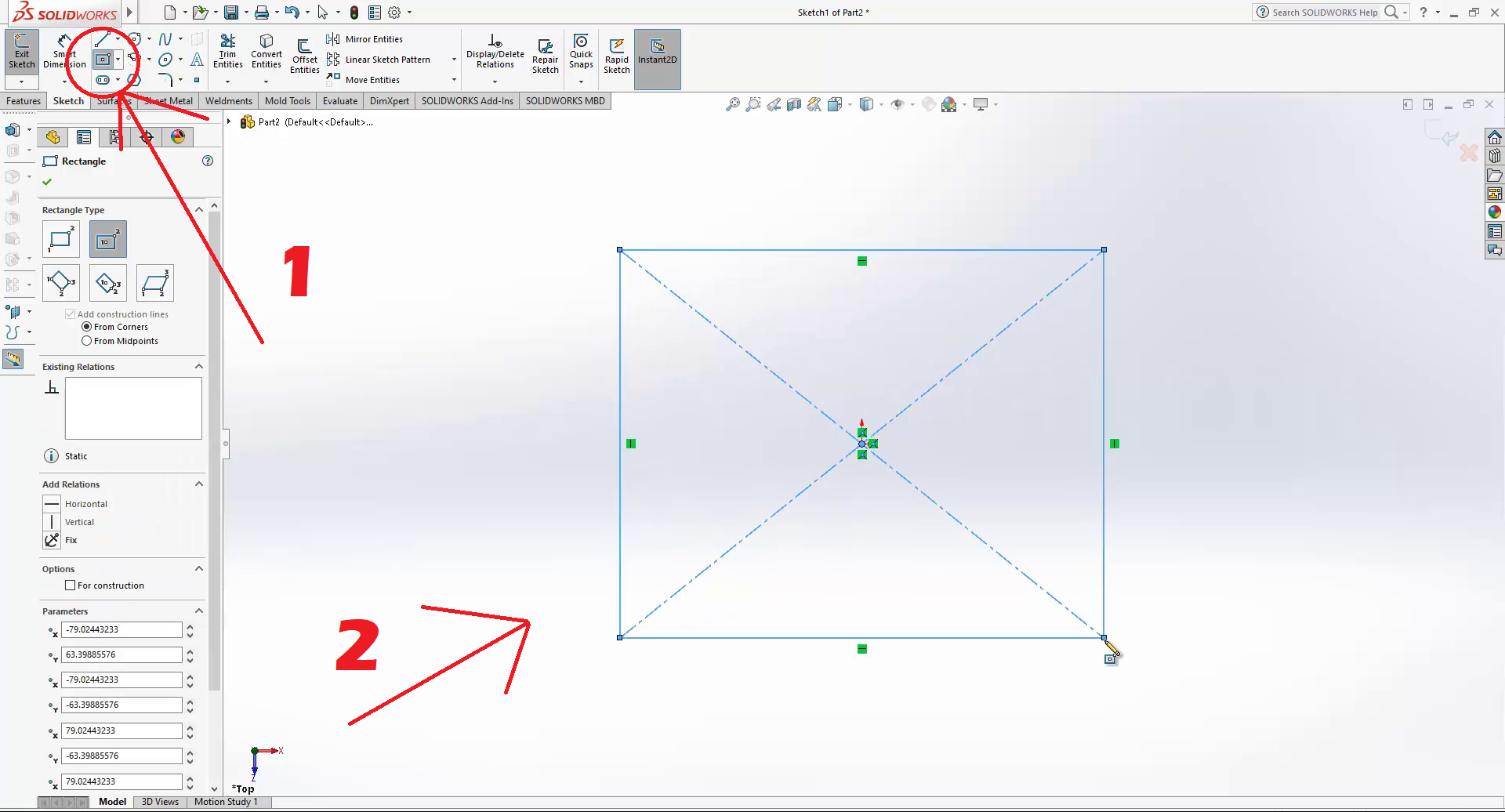 Go to center rectangle command, draw a rectangle starting from the point of the axis.