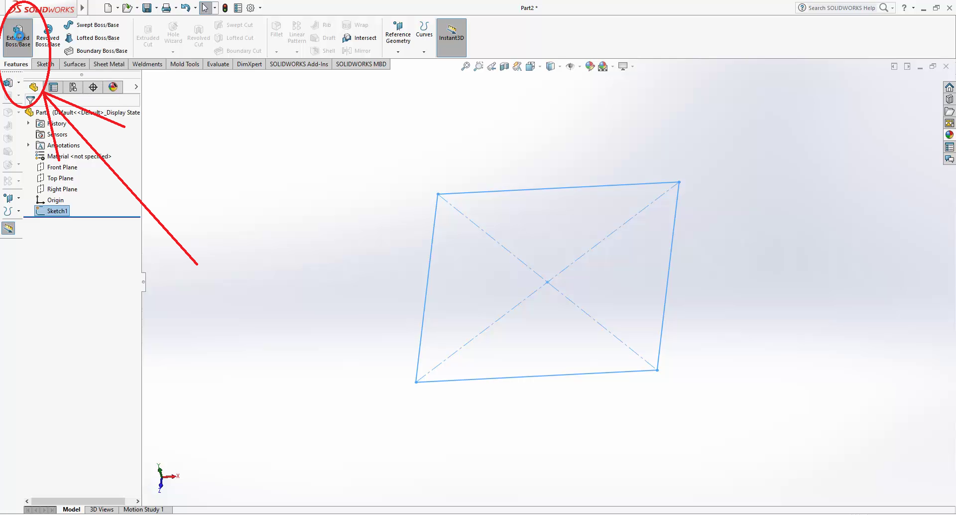 Go to features, then Extruded boss/base.