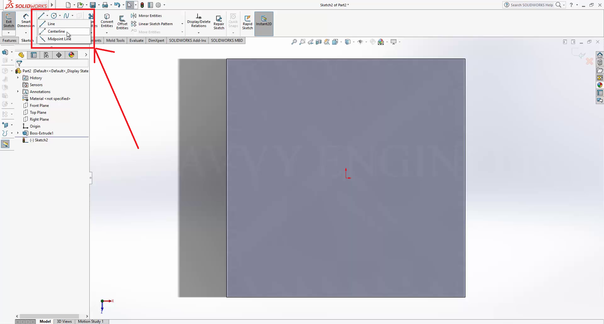 Under the line command, you will find the centerline option. Click on it.