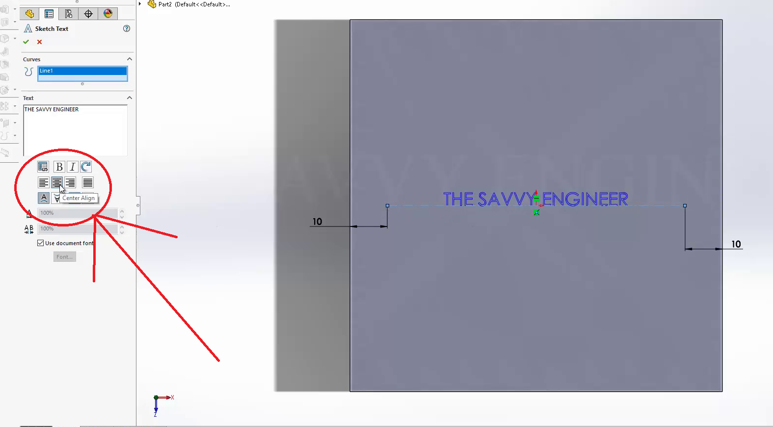 Click on the center-align option to see the text in the middle of the centerline. Click OK, then exit the workbench.