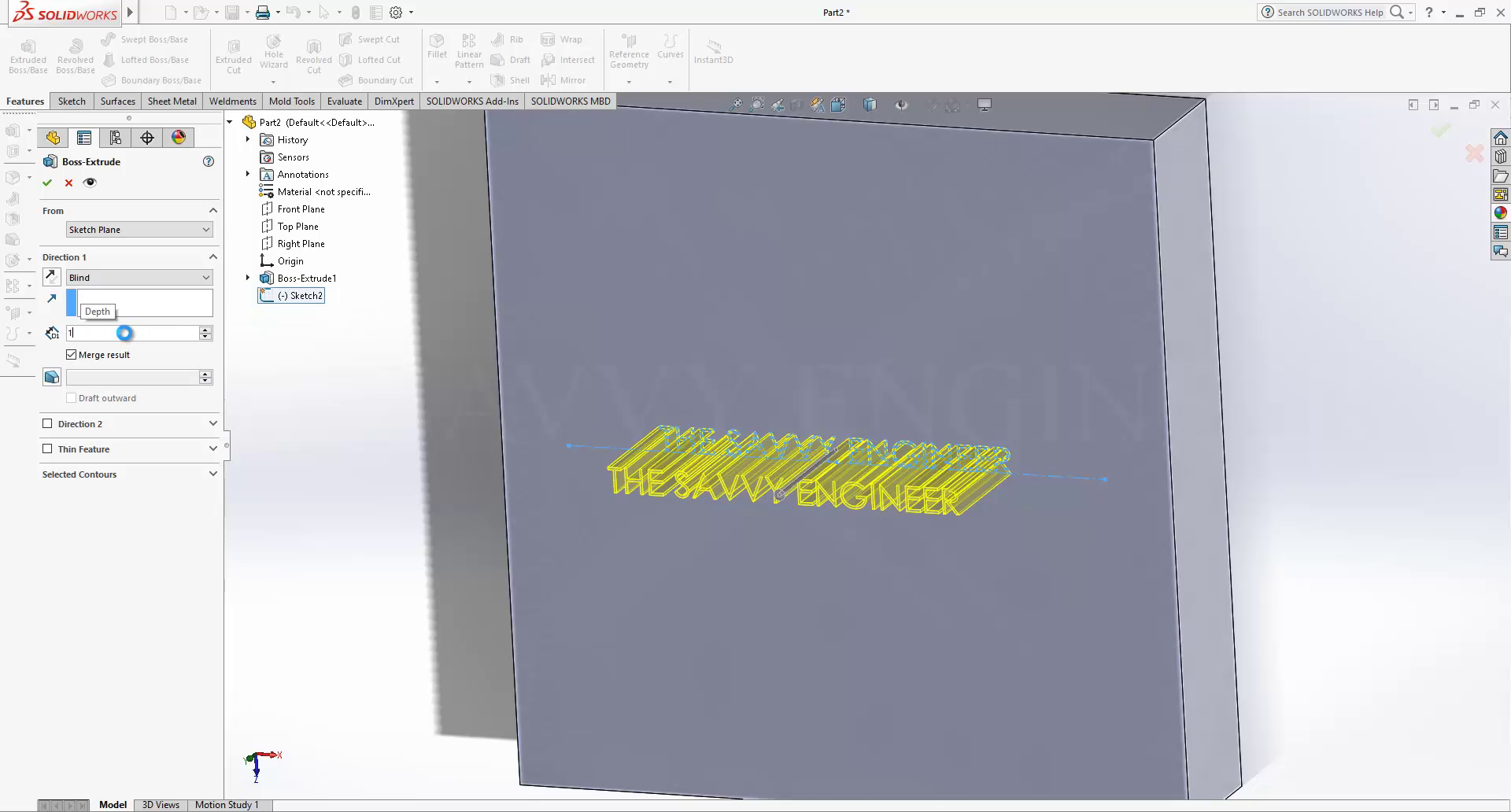 Click on the sketch of the text, then add 1mm to the extrusion. then click OK.