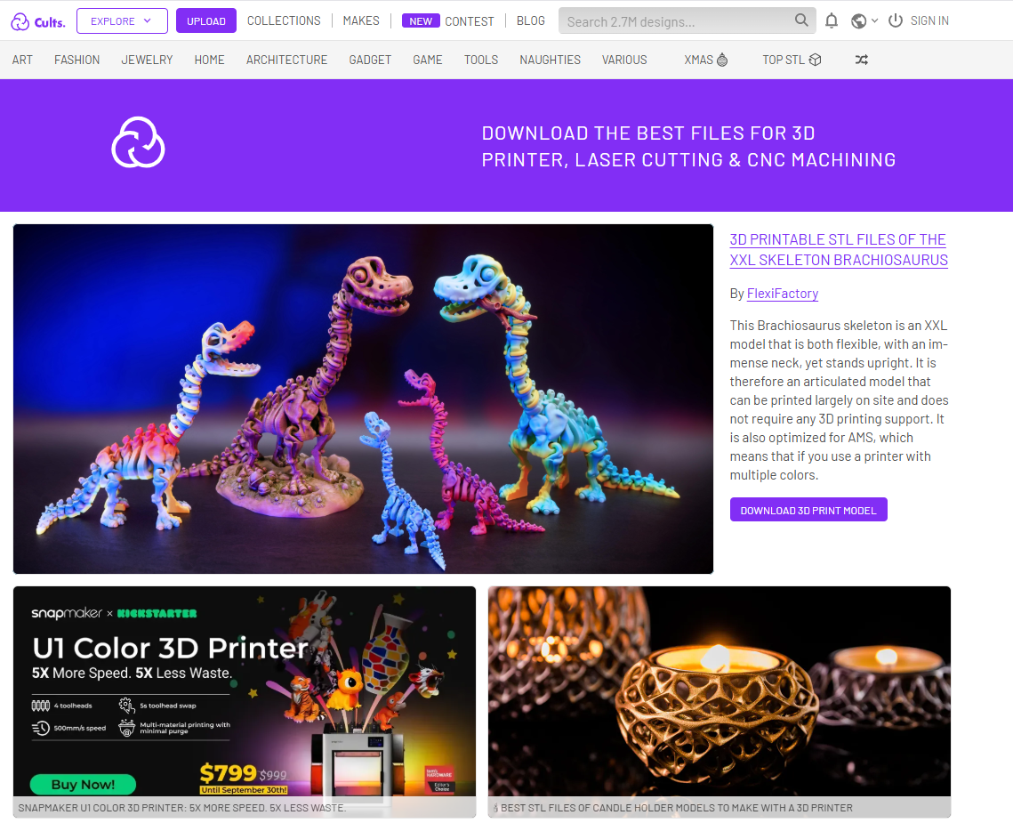 Cults 3D also supports interaction between designers and users, helping you learn new techniques and find inspiration. Whether you want functional tools or artistic pieces, downloading free 3D printables from Cults 3D helps you explore, experiment, and expand your creative possibilities.