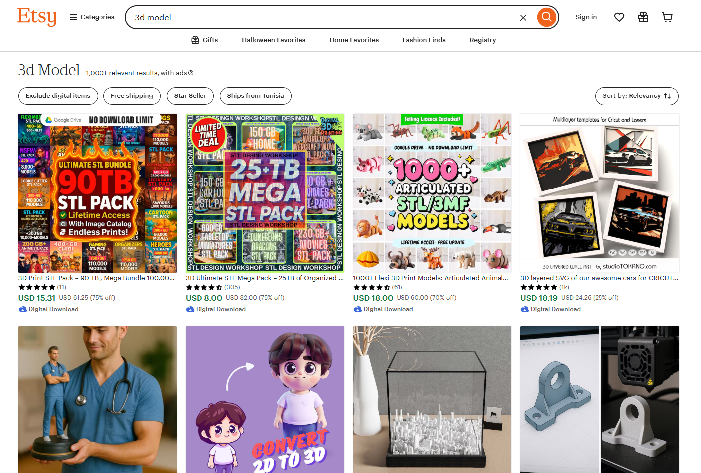 You can sell STL files, 3D templates, or custom-made models directly to a global audience. The platform provides easy shop setup, secure payments, and strong marketing tools to promote your work. By selling on Etsy, you can build your own brand, gain loyal customers, and earn consistent income from your 3D design skills and creativity.