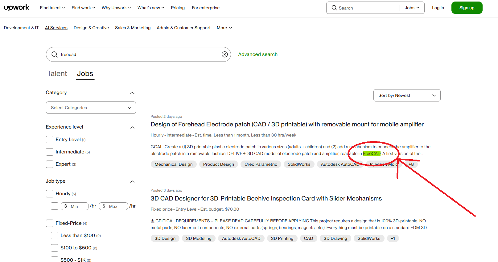 What makes Upwork stand out is its flexibility and broad client base. FreeCAD designers can find both short-term gigs and long-term contracts in industries like manufacturing, architecture, and product engineering. The platform allows you to create a detailed profile where you can display your portfolio, highlight your FreeCAD expertise, and set competitive hourly or fixed project rates.